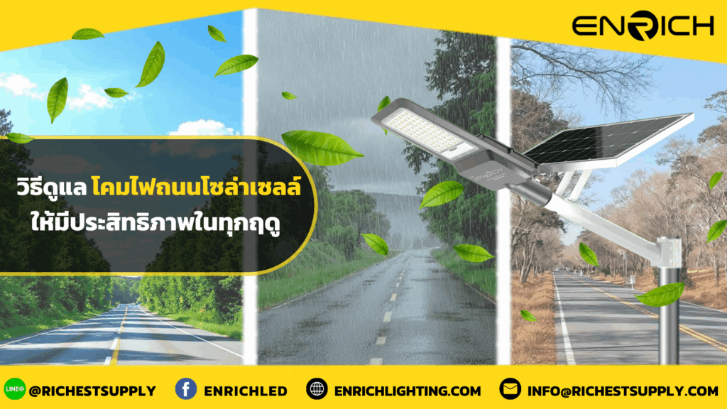 วิธีดูแลโคมไฟถนนโซล่าเซลล์ให้มีประสิทธิภาพในทุกฤดู โคมไฟถนนโซล่าเซลล์ ได้รับความนิยมอย่างแพร่หลายในปัจจุบัน ด้วยคุณสมบัติที่ประหยัดพลังงาน เป็นมิตรต่อสิ่งแวดล้อม และติดตั้งง่าย แต่เพื่อให้โคมไฟเหล่านี้ทำงานได้อย่างเต็มประสิทธิภาพและมีอายุการใช้งานยาวนาน การดูแลรักษาที่ถูกวิธีจึงเป็นสิ่งสำคัญ บทความนี้จะนำเสนอวิธีการดูแลรักษาโคมไฟถนนโซล่าเซลล์ในทุกฤดู เพื่อให้มั่นใจว่าไฟถนนจะสว่างไสวอยู่เสมอ ทำไมต้องดูแลโคมไฟถนนโซล่าเซลล์ตามฤดูกาล? การเปลี่ยนแปลงของฤดูกาลในประเทศไทยมีผลอย่างมากต่อประสิทธิภาพของ โคมไฟถนนโซล่าเซลล์ เช่น: ฤดูร้อน: แสงแดดแรงเหมาะกับการชาร์จพลังงาน แต่ฝุ่นอาจเกาะแผงโซลาร์เซลล์ ฤดูฝน: มีเมฆมาก ทำให้การชาร์จไฟได้น้อยลง และมีความชื้นสะสม ฤดูหนาว: อุณหภูมิต่ำอาจทำให้แบตเตอรี่จ่ายไฟได้ช้าลงหรือไม่เต็มกำลัง ดังนั้น การดูแลรักษาที่ถูกวิธีในแต่ละฤดูจะช่วยให้โคมไฟยังคงให้แสงสว่างได้อย่างมีประสิทธิภาพ ไม่สะดุด วิธีดูแลโคมไฟถนนโซล่าเซลล์ในแต่ละฤดู การดูแลโคมไฟถนนโซล่าเซลล์ในฤดูร้อน ความท้าทาย: อุณหภูมิสูงและมีฝุ่นละอองมาก เพิ่มความถี่ในการทำความสะอาดแผง: ฝุ่นละอองและคราบสกปรกจากความร้อนทำให้ประสิทธิภาพการรับแสงลดลง ควรเช็ดทำความสะอาดให้บ่อยขึ้น ตรวจสอบการระบายความร้อนของแบตเตอรี่: อุณหภูมิสูงอาจส่งผลเสียต่อแบตเตอรี่ ตรวจสอบว่ามีการระบายความร้อนที่ดีหรือไม่ การดูแลโคมไฟถนนโซล่าเซลล์ในฤดูฝน ความท้าทาย: ความชื้นสูง ฝนตกหนัก และความเสี่ยงจากฟ้าผ่า ตรวจสอบซีลกันน้ำ: ตรวจสอบตามรอยต่อและซีลยางของกล่องควบคุมและแบตเตอรี่ว่ายังแน่นหนา ป้องกันน้ำเข้า การระบายน้ำ: ตรวจสอบบริเวณฐานเสาว่ามีการระบายน้ำที่ดี ป้องกันน้ำขังทำให้โครงสร้างเสียหาย ความปลอดภัยจากฟ้าผ่า: หากอยู่ในพื้นที่เสี่ยง อาจพิจารณาติดตั้งอุปกรณ์ป้องกันฟ้าผ่าเพิ่มเติม การดูแลโคมไฟถนนโซล่าเซลล์ในฤดูหนาว (หรือช่วงที่มีเมฆมาก) ความท้าทาย: แสงแดดน้อยลง ประสิทธิภาพการชาร์จลดลง […]