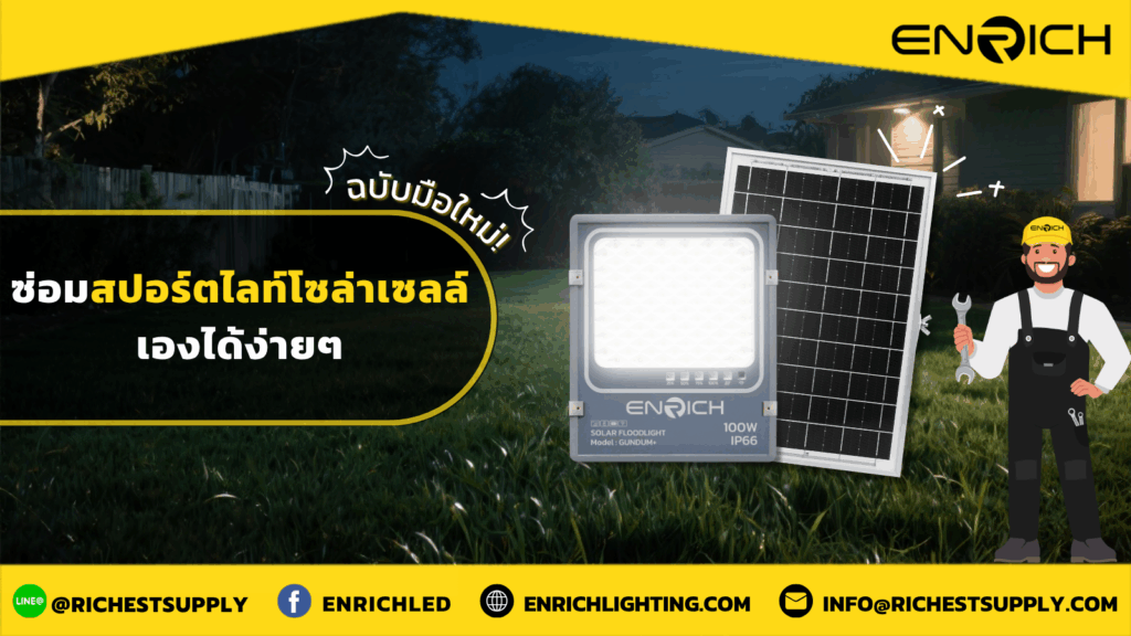 ซ่อมสปอร์ตไลท์โซล่าเซลล์เองได้ง่ายๆ สปอร์ตไลท์โซล่าเซลล์เป็นทางเลือกที่ยอดเยี่ยมสำหรับการให้แสงสว่างภายนอกบ้าน เพราะทั้ง ประหยัดพลังงาน ติดตั้งง่าย และใช้งานได้ทุกที่ โดยไม่ต้องพึ่งไฟบ้าน แต่เมื่อใช้งานไปนานๆ ก็อาจเกิดปัญหาขึ้นได้ เช่น ไฟไม่ติด, แสงสว่างน้อยลง, หรือ แบตเตอรี่เสื่อม แล้วเราจะแก้ไขยังไงดี? บทความนี้จะพาเรียนรู้ ขั้นตอนซ่อมสปอร์ตไลท์โซล่าเซลล์ด้วยตัวเองแบบง่ายๆ โดยไม่ต้องพึ่งช่าง พร้อมเทคนิคตรวจสอบเบื้องต้นที่ใครๆ ก็ทำได้ สาเหตุที่พบบ่อยเมื่อสปอร์ตไลท์โซล่าเซลล์ไม่ทำงาน ก่อนจะลงมือซ่อมสปอร์ตไลท์โซล่าเซลล์ เราควรเข้าใจปัญหาก่อนว่าเกิดจากอะไร ต่อไปนี้คือปัญหายอดฮิตที่พบบ่อย: 1. แผงโซล่าเซลล์ไม่ชาร์จไฟ ฝุ่นหรือสิ่งสกปรกเกาะแผงโซล่าเซลล์ แผงหันผิดทิศ ไม่ได้รับแสงแดดโดยตรง สายไฟที่เชื่อมแผงกับตัวโคมหลุดหรือขาด 2. แบตเตอรี่เสื่อมหรือหมดอายุ อายุการใช้งานของแบตเตอรี่ส่วนใหญ่คือ 1-2 ปี สปอร์ตไลท์โซล่ามีไฟที่ลดลงหรือหมดเร็วผิดปกติ 3. หลอด LED ชำรุด หลอด LED เสียหรือวงจรในโคมเสีย แสงกระพริบหรือไม่ติดเลย 4. เซ็นเซอร์ตรวจจับแสงมีปัญหา สปอร์ตไลท์โซล่าเซลล์ โดนฝุ่นเกาะ โดนน้ำ ความชื้น หรือแมลงเข้าไปเกาะ ขั้นตอนซ่อมสปอร์ตไลท์โซล่าเซลล์ด้วยตัวเองแบบง่ายๆ ต่อไปนี้คือวิธีตรวจสอบและซ่อมเบื้องต้นด้วยตัวเอง: 1. ตรวจสอบแผงโซล่าเซลล์ […]