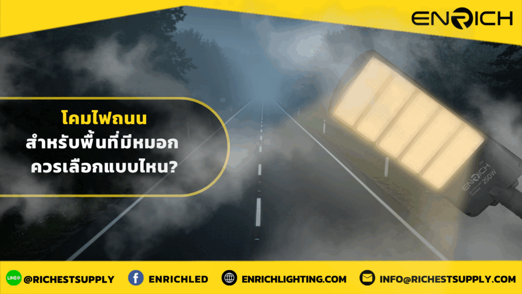 โคมไฟถนนสำหรับพื้นที่มีหมอก ควรเลือกแบบไหน? พื้นที่ที่มีหมอกจัด เช่น เส้นทางภูเขา หรือบริเวณชุ่มชื้น มักมองเห็นไม่ชัดในช่วงเช้าหรือกลางคืน หากใช้โคมไฟถนนไม่เหมาะสม อาจทำให้แสงฟุ้ง มองทางไม่ชัด และเสี่ยงอุบัติเหตุ การเลือก โคมไฟถนนสำหรับพื้นที่ที่มีหมอก จึงเป็นเรื่องสำคัญ บทความนี้จะพาไปดูแนวทางเลือกโคมไฟที่ให้แสงเจาะหมอกได้ดี มองเห็นถนนชัดเจน และปลอดภัยมากขึ้นในทุกสภาพอากาศ ทำไมพื้นที่มีหมอกต้องใช้โคมไฟเฉพาะทาง? พื้นที่ที่เกิดหมอกบ่อย เช่น บนดอย เส้นทางสายภูเขา พื้นที่ชุ่มน้ำ หรือถนนที่ใกล้แม่น้ำ มักประสบปัญหาเรื่อง “การมองเห็นในระยะใกล้” โดยเฉพาะในช่วงหัวรุ่งและกลางคืน หมอกทำให้แสงกระเจิงและเบลอ จนผู้ขับขี่ไม่สามารถแยกเส้นทาง ถนน หรือคนเดินเท้าได้ชัดเจน ดังนั้น โคมไฟถนนในพื้นที่ลักษณะนี้ ไม่สามารถใช้แบบเดียวกับพื้นที่ทั่วไป ได้ การออกแบบระบบไฟต้องมีความเข้าใจในพฤติกรรมของแสงกับหมอก เพื่อให้เกิดความปลอดภัยสูงสุด ปัญหาของหมอกที่มีต่อโคมไฟถนน ก่อนเลือกโคมไฟถนน เราควรรู้ว่าหมอกมีผลกระทบอย่างไรต่อแสงไฟ: ลดการมองเห็น: หมอกเป็นละอองน้ำขนาดเล็กที่ลอยในอากาศ ทำให้แสงกระเจิง (scattering) เมื่อแสงส่องผ่าน ส่งผลให้แสงจ้าเกินไปหรือไม่ชัดเจน เกิดการสะท้อนย้อนแสง (Glare): หากใช้โคมไฟที่มีความสว่างสูงและมุมกระจายแสงกว้างเกินไป อาจสะท้อนหมอกกลับเข้าตาผู้ขับขี่ แสงกระจายไม่ถึงพื้นถนน: แสงบางส่วนอาจสูญเสียพลังงานกลางทางโดยไม่สามารถส่องถึงพื้นถนนได้ หลักการเลือกโคมไฟถนนสำหรับพื้นที่มีหมอก 1. เลือกอุณหภูมิสี […]
